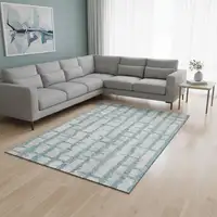 Green Gray And Ivory Geometric Washable Area Rug With UV Protection