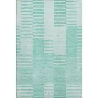 Green Gray And Ivory Plaid Washable Area Rug With UV Protection