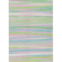 Green Gray And Ivory Striped Washable Indoor Outdoor Area Rug