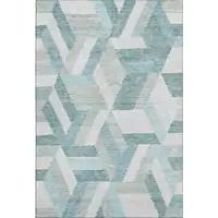 Green Ivory And Beige Striped Washable Area Rug With UV Protection