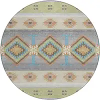Green Ivory And Brown Geometric Washable Indoor Outdoor Area Rug