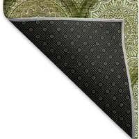Green Ivory And Gray Oriental Washable Area Rug With UV Protection