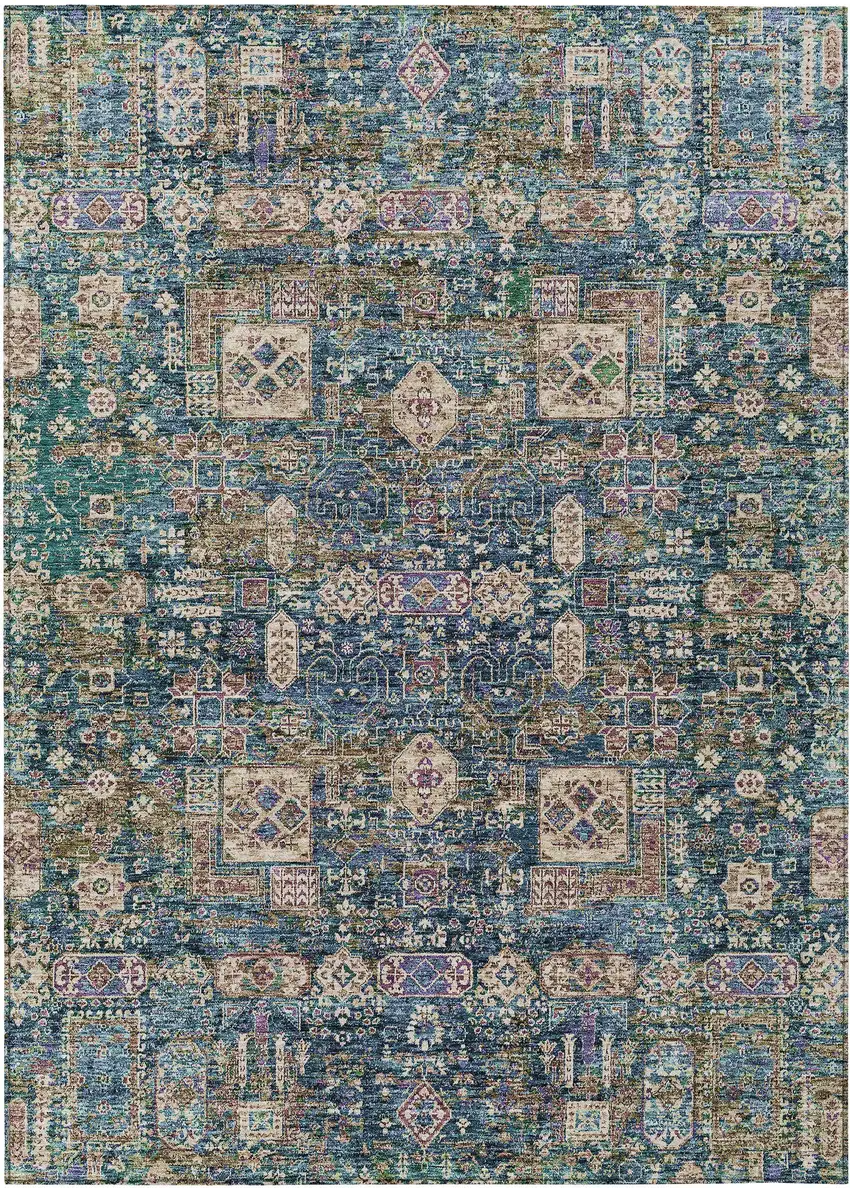 Add some artistry to your room with this 8-foot x 10-foot green navy blue and ivory oriental washable indoor outdoor area rug. This rectangle shaped rug features a oriental design that will work well both indoors or out. A classic shape marries with good looking design for your living room, hall, bedroom, porch, patio, or poolside. Ideal for outdoor spaces or high traffic areas with kids and pets, this rug is made from heavy duty polyester that is stain resistant to help repel water, dirt, and stains. Versatile in use, durable, and easy to maintain, this rug is an ideal solution to add a decorative and inviting touch to your indoor or outdoor space. 96-inch h x 120-inch w x 0.19-inch d.