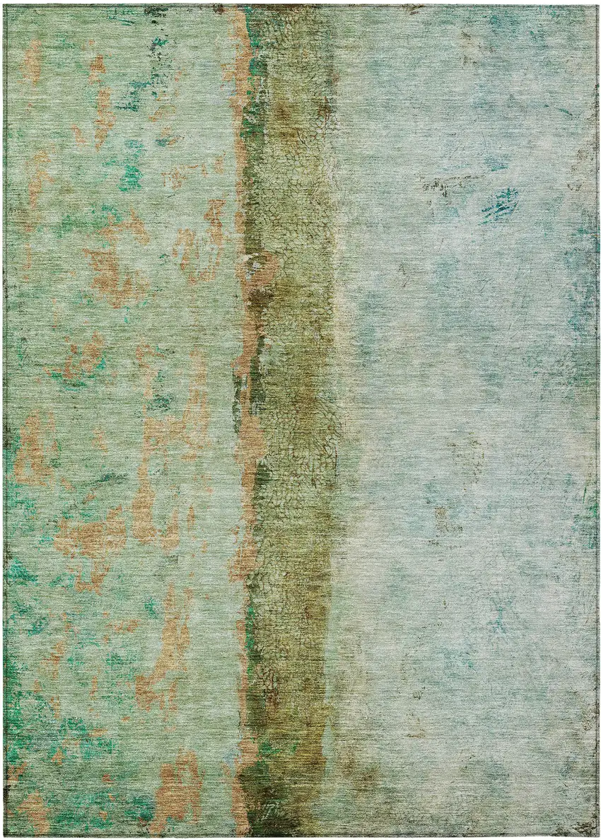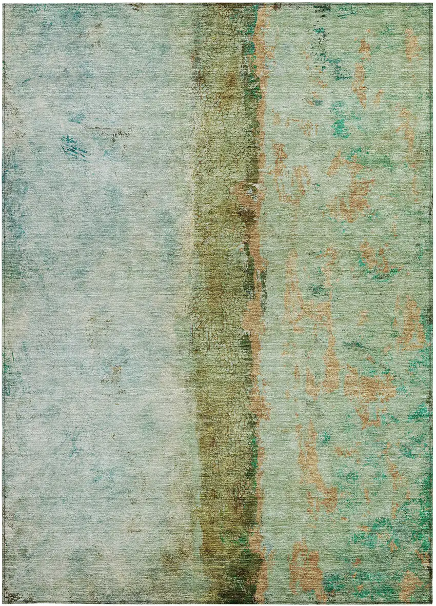 Green Olive Green And Blue Abstract Washable Indoor Outdoor Area Rug