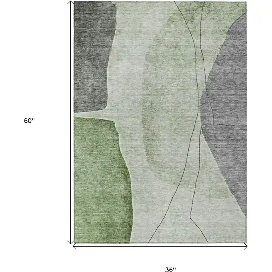 Set an inviting tone in your space with this 3-foot x 5-foot green olive green and gray abstract washable indoor outdoor area rug. This rectangle shaped rug features a abstract design that will work well both indoors or out. A classic shape marries with good looking design for your living room, hall, bedroom, porch, patio, or poolside. Ideal for outdoor spaces or high traffic areas with kids and pets, this rug is made from heavy duty polyester that is stain resistant to help repel water, dirt, and stains. Makes a great way to dress up your patio, porch, or poolside, but also works well as a durable and easy to maintain option in the kitchen, family room, or mudroom. 36-inch h x 60-inch w x 0.19-inch d.