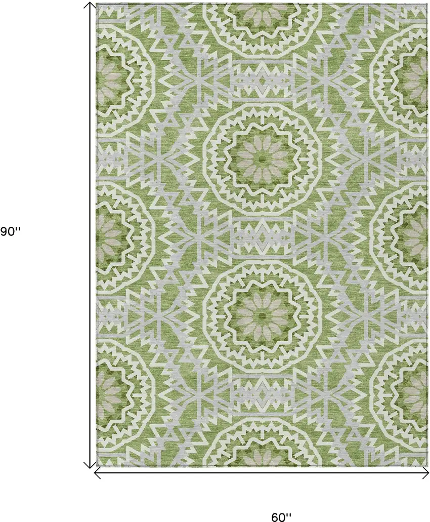 Green Olive Green And Ivory Floral Medallion Washable Indoor Outdoor Area Rug