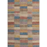 This 9-foot x 12-foot green orange and blue abstract geometric washable area rug with uv protection, is a great way to add warmth to a room. Ideal for spaces with kids and pets, this rug is stain resistant to help repel dirt and spilled liquids. Built to last, this rug crafted from polyester fibers is known for its durability and long lasting appeal. Rugs are a great way to showcase your style, hide imperfections, warm your home and reduce noise. This larger sized, transitional styled rug is ready to create a focal point or statement piece in your room. 108.00-inch h x 144.00-inch w x 0.39-inch d.
