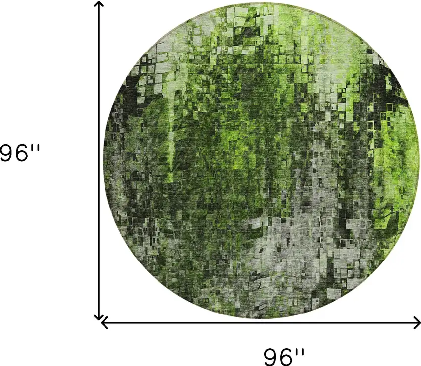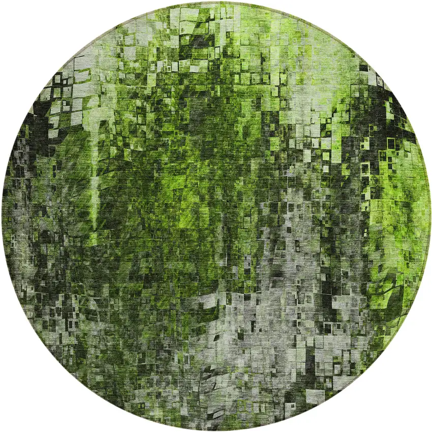 Green Round Abstract Washable Non Skid Indoor Outdoor Area Rug