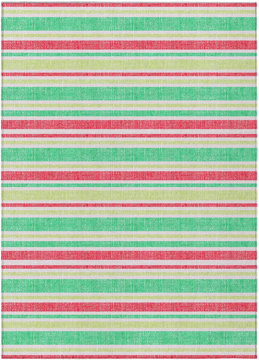 Green Striped Washable Non Skid Indoor Outdoor Area Rug