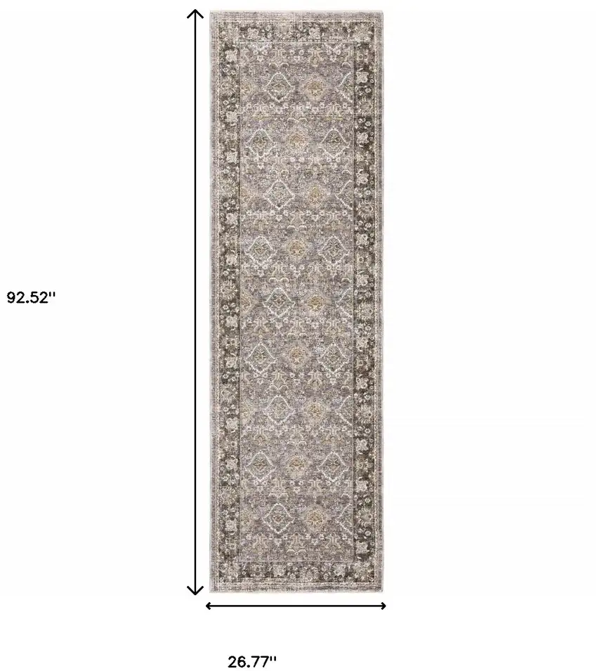 Grey And Blue Oriental Power Loom Stain Resistant Runner Rug With Fringe