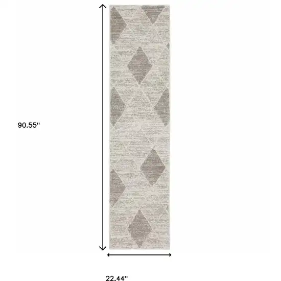Grey And Ivory Geometric Power Loom Stain Resistant Runner Rug