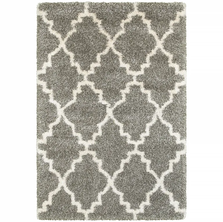 Grey And Ivory Geometric Shag Power Loom Stain Resistant Area Rug