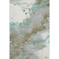 Grey Blue And Teal Oriental Power Loom Stain Resistant Area Rug
