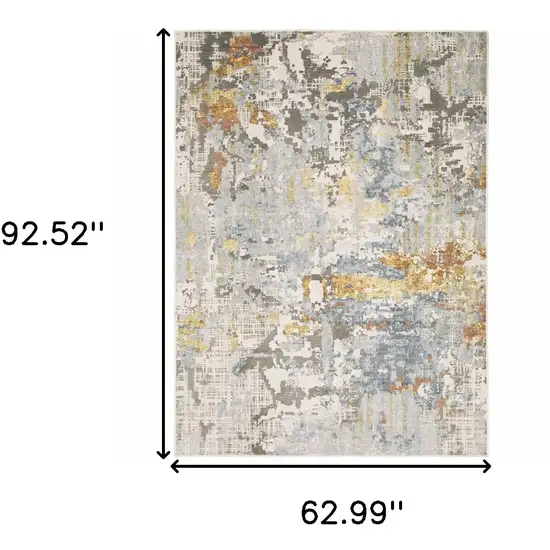 Dressed in a beautiful fusion of grey, blue, beige, gold, and rust, this rug introduces an abstract charm and a pop of color to any interior design. It's perfect for anyone looking to introduce some creativity and color into their decor.