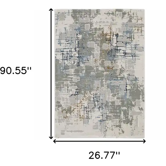 Grey Blue Brown Ivory And Deep Blue Abstract Power Loom Stain Resistant Runner Rug