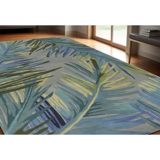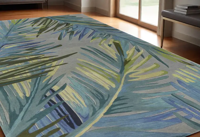 Grey Blue Hand Tufted Tropical Palms Indoor Area Rug