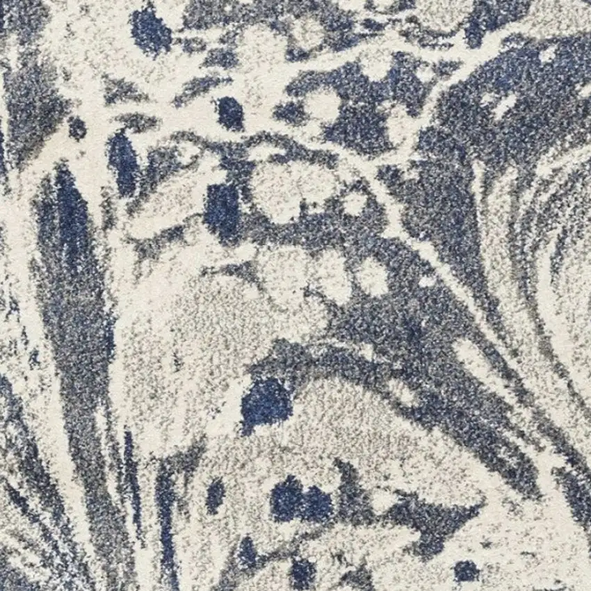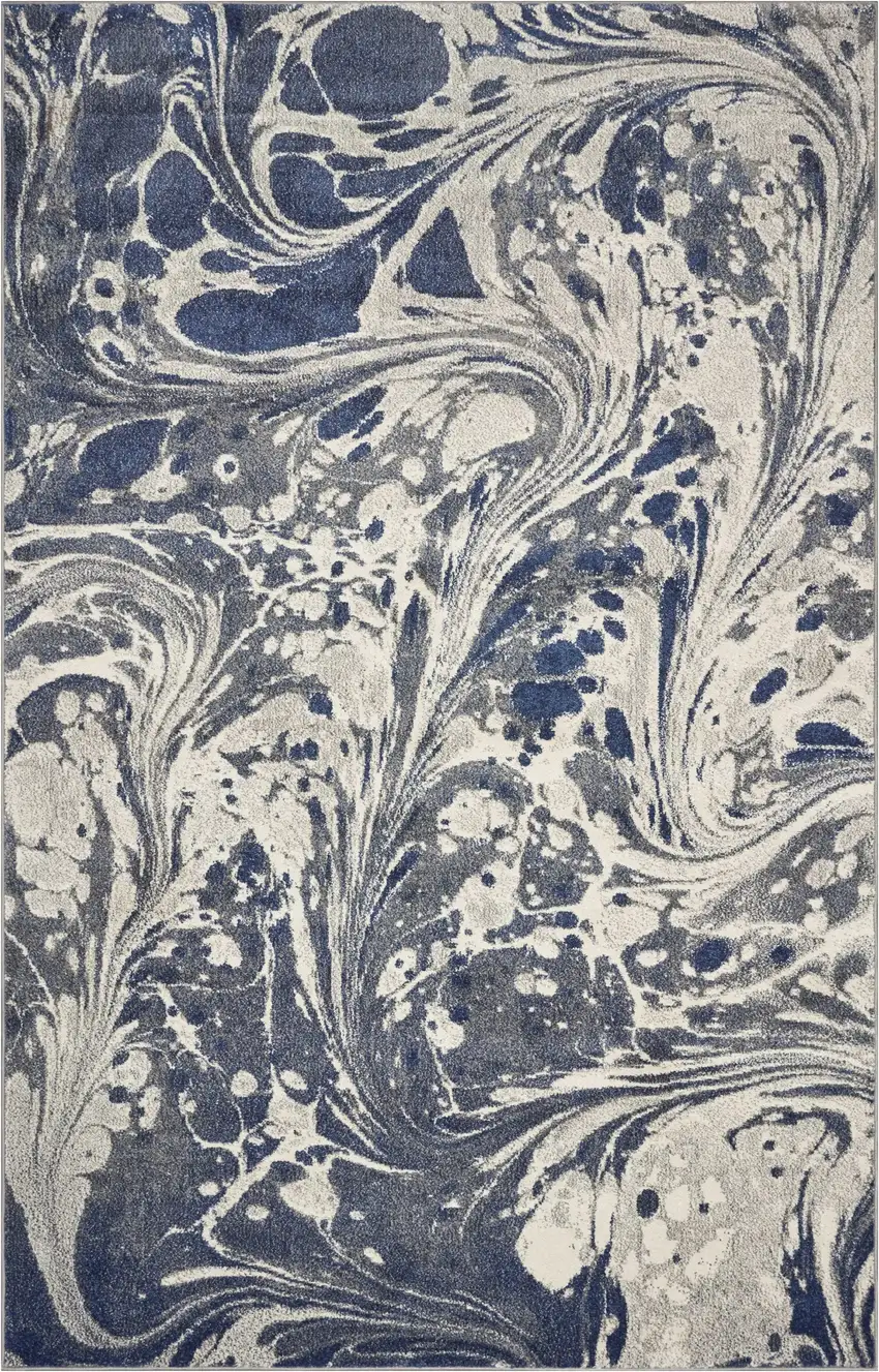 Grey Blue Machine Woven Marble Indoor Area Rug