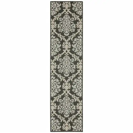 Grey Floral Stain Resistant Indoor Outdoor Area Rug