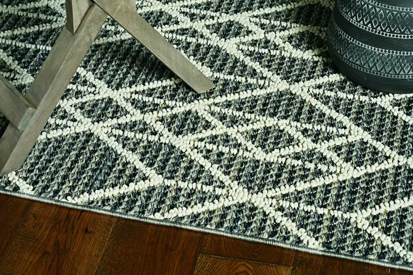 As practical as it is stylish, this rug's unique geometric lines add a touch of sophistication to any room. It boasts a cool grey tone, instantly elevating your room's aesthetic appeal.