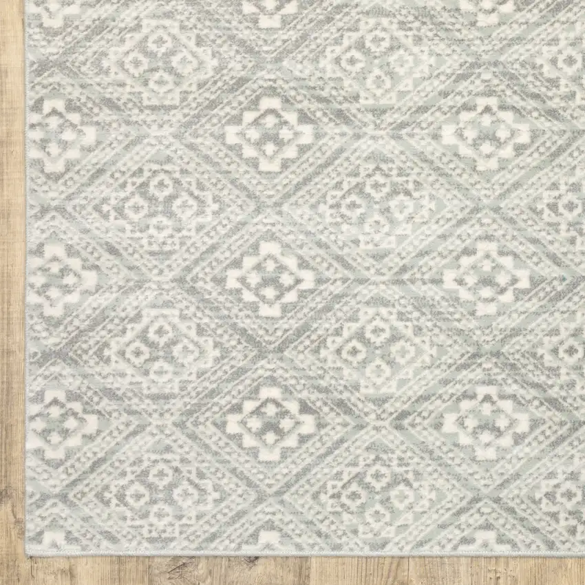 Grey Geometric Power Loom Stain Resistant Area Rug