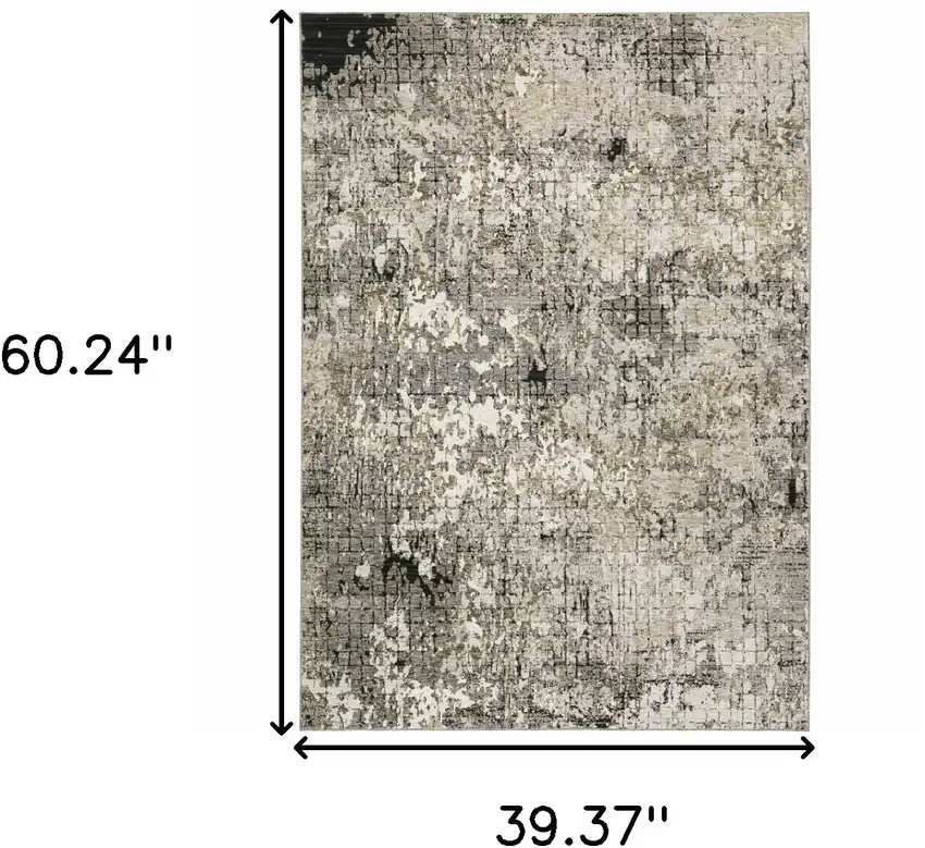 Grey Ivory Beige Charcoal Black Tan And Brown Abstract Power Loom Stain Resistant Area Rug