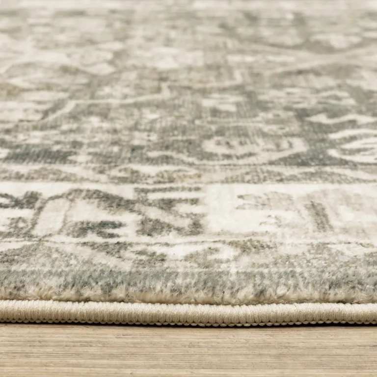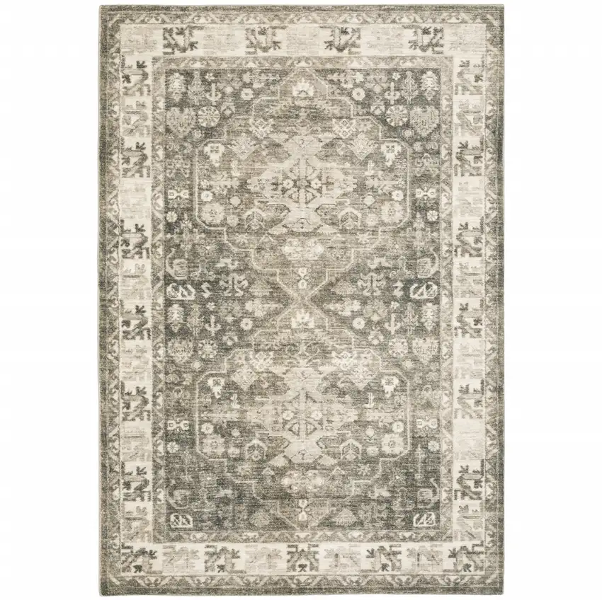 Grey Ivory Tan And Beige Oriental Power Loom Stain Resistant Area Rug