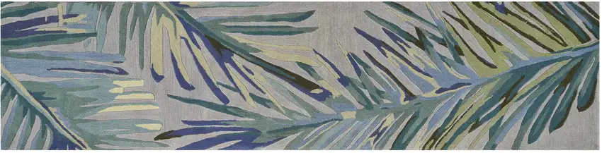 Grey or Blue Tropical Leaves Wool Indoor Runner Rug