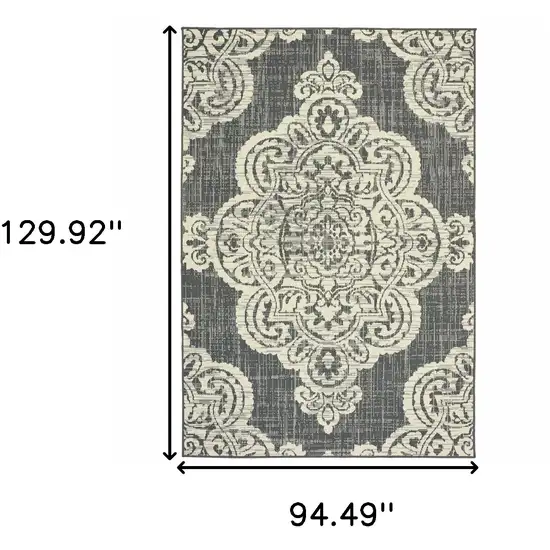 Designed to deliver long-lasting performance, this grey Oriental rug is just as tough as it is beautiful. Mold, mildew, fade, and stain-resistant; it stands up to the challenges of busy households with kids and pets or outdoor environments. No worries about spilled drinks or barbecue sauce drips, this rug takes it all in stride. Its robust aesthetic holds up under the most active foot traffic, ensuring the pattern remains vibrant over time.
