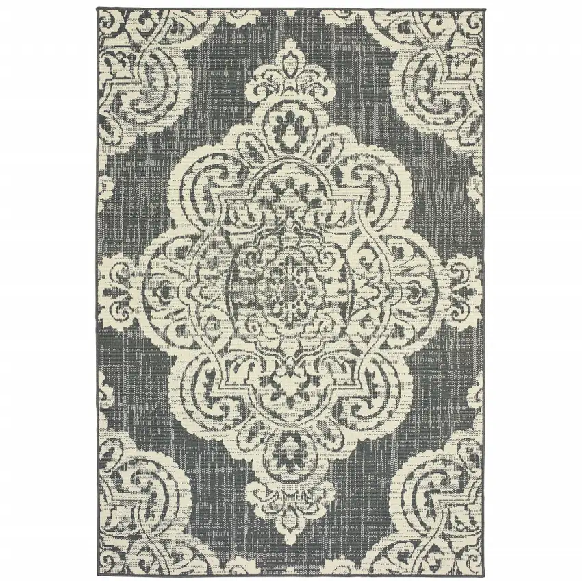 Grey Oriental Stain Resistant Indoor Outdoor Area Rug