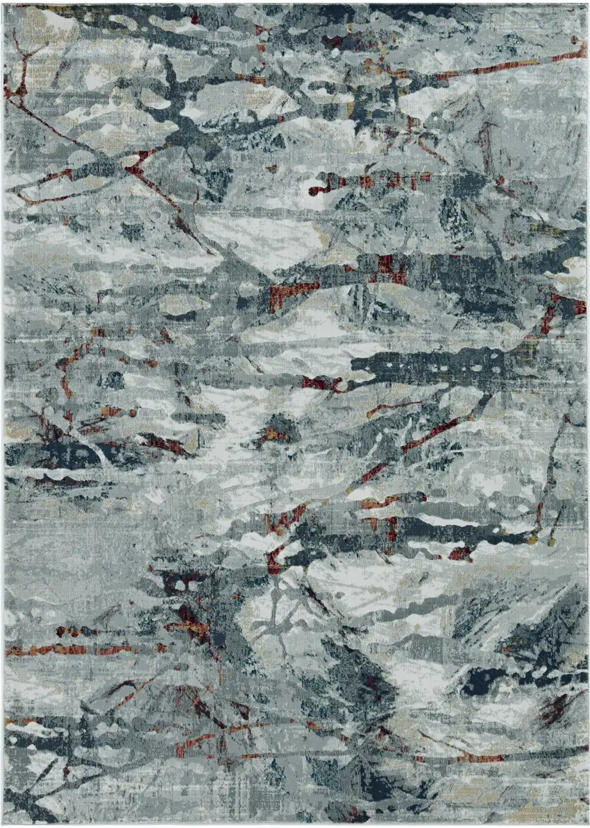 Grey Teal Machine Woven Abstract Splatter Indoor Area Rug
