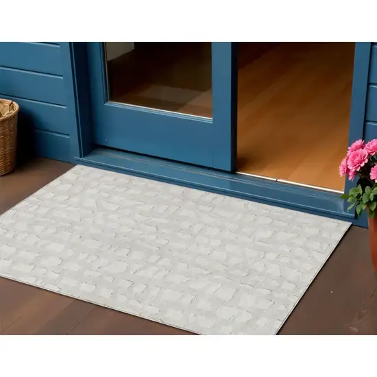Ivory And Beige Abstract Washable Indoor Outdoor Area Rug