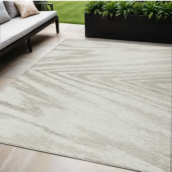 Ivory And Beige Abstract Washable Indoor Outdoor Area Rug