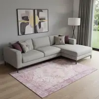 Ivory And Beige Floral Washable Area Rug With UV Protection