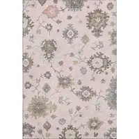 Ivory And Beige Floral Washable Area Rug With UV Protection