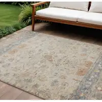 Ivory And Beige Floral Washable Indoor Outdoor Area Rug