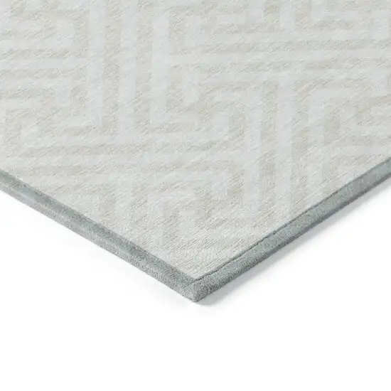 Ivory And Beige Geometric Washable Indoor Outdoor Area Rug