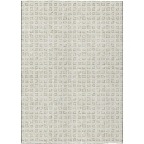Ivory And Beige Geometric Washable Indoor Outdoor Area Rug