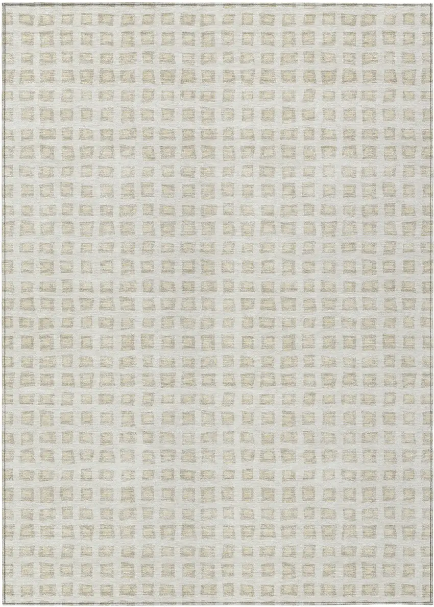 Ivory And Beige Geometric Washable Indoor Outdoor Area Rug