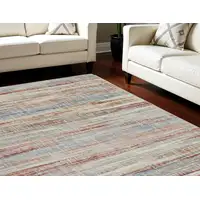 Ivory And Beige Striped Washable Area Rug With UV Protection