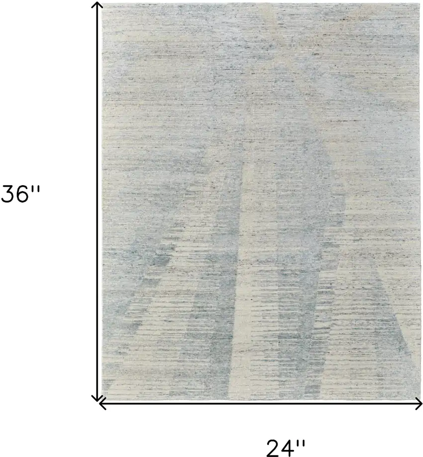 Ivory and Blue Abstract Hand Knotted Worn Faded Area Rug