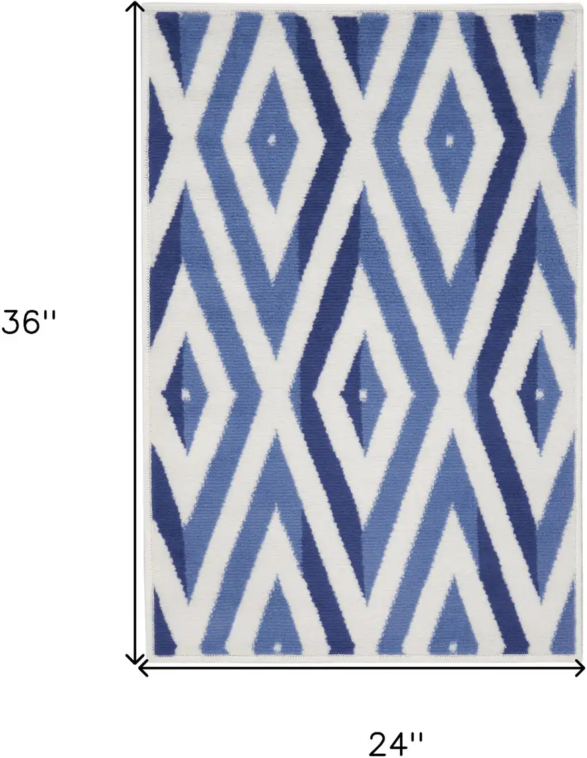Ivory and Blue Geometric Area Rug