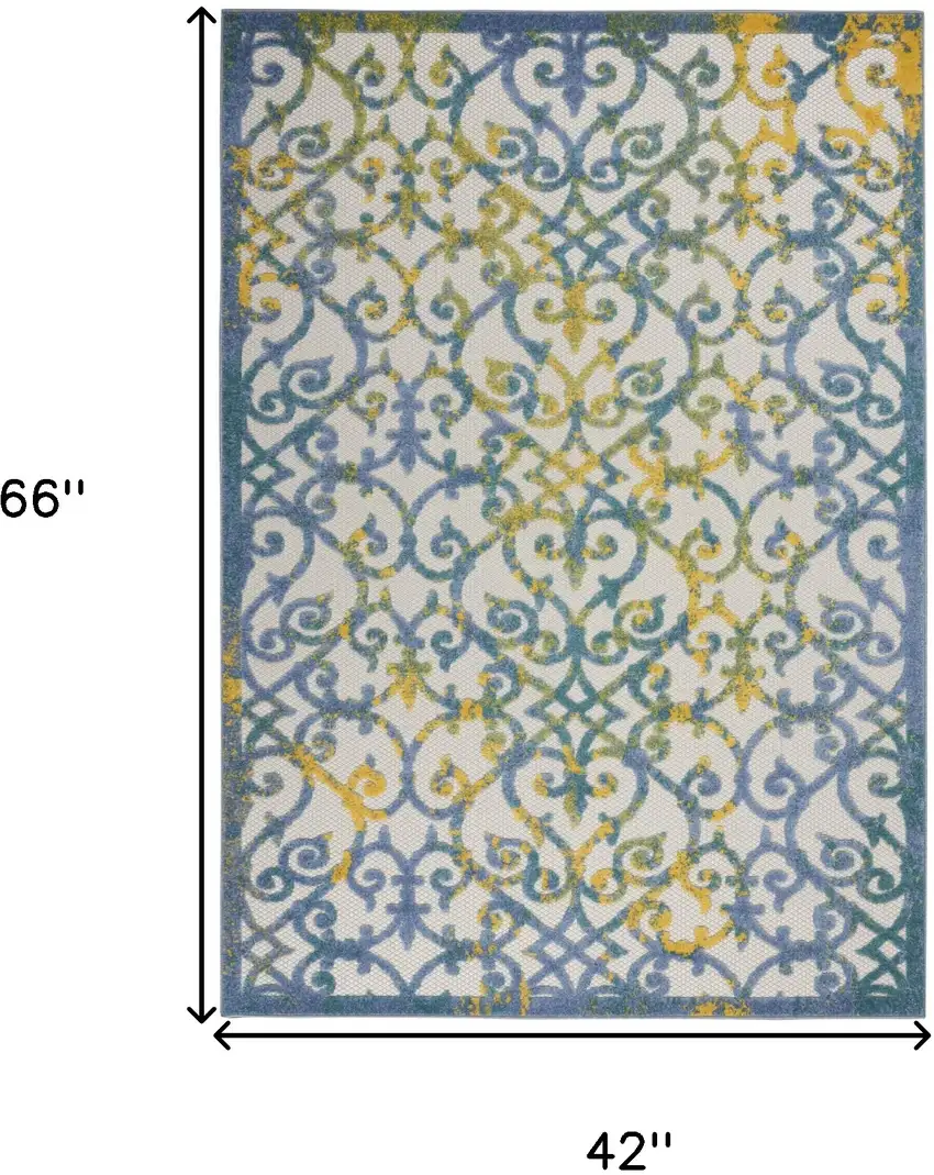 Designed to withstand the elements, this indoor/outdoor rug is made with high-quality materials that ensure long-lasting beauty. Whether you choose to place it indoors or outdoors, its versatile design seamlessly blends with any style or setting. The ivory and blue hues create a beautiful contrast that complements both modern and traditional aesthetics, making it a versatile choice for any area.