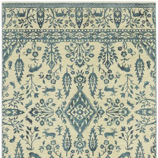 Ivory And Blue Oriental Area Rug With Fringe