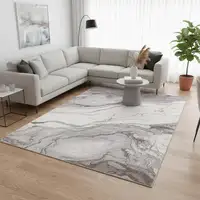 Ivory and Blue Oriental Power Loom Distressed Washable Non Skid Area Rug