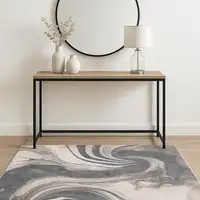 Ivory And Blue Tribal Washable Area Rug With UV Protection