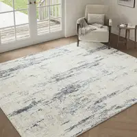 Ivory and Brown Damask Distressed Non Skid Area Rug