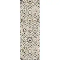 Ivory And Brown Floral Medallion Runner Rug With Fringe
