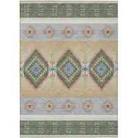 Ivory And Brown Southwestern Washable Indoor Outdoor Area Rug