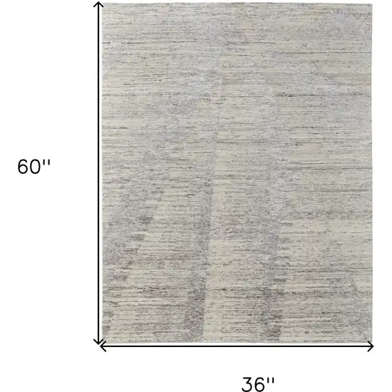 Ivory and Gray Abstract Hand Knotted Worn Faded Area Rug