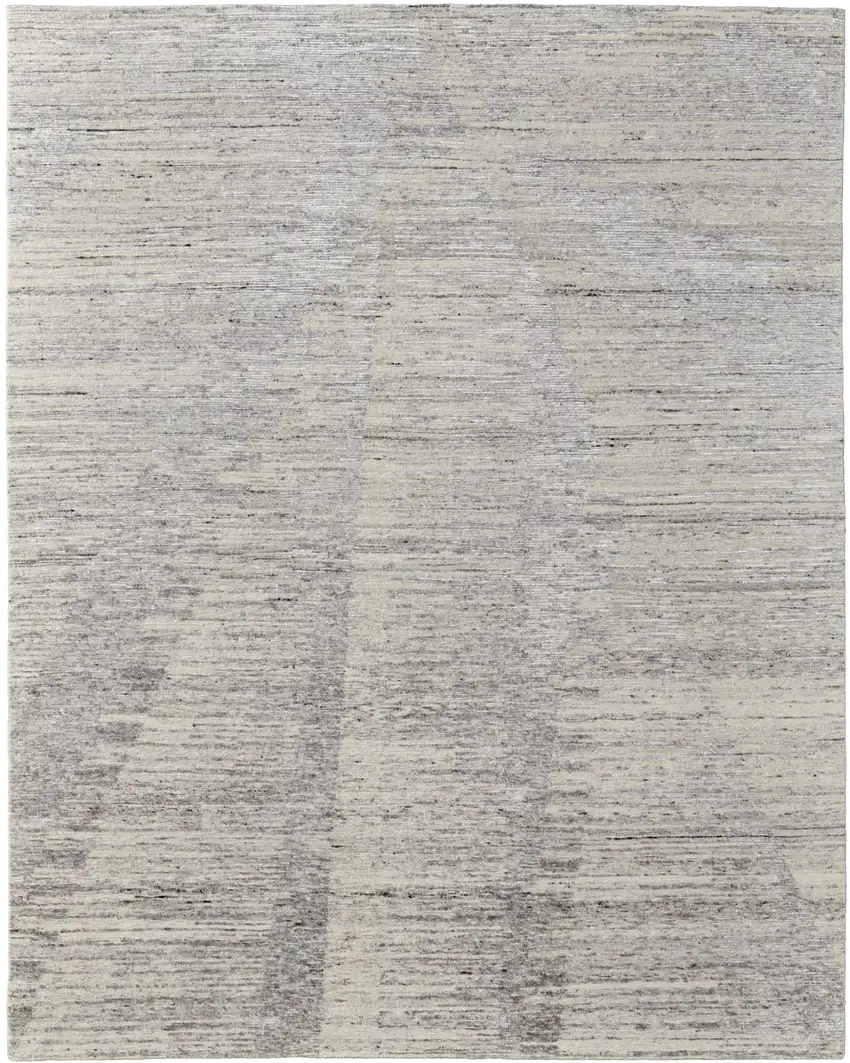 Ivory and Gray Abstract Hand Knotted Worn Faded Area Rug